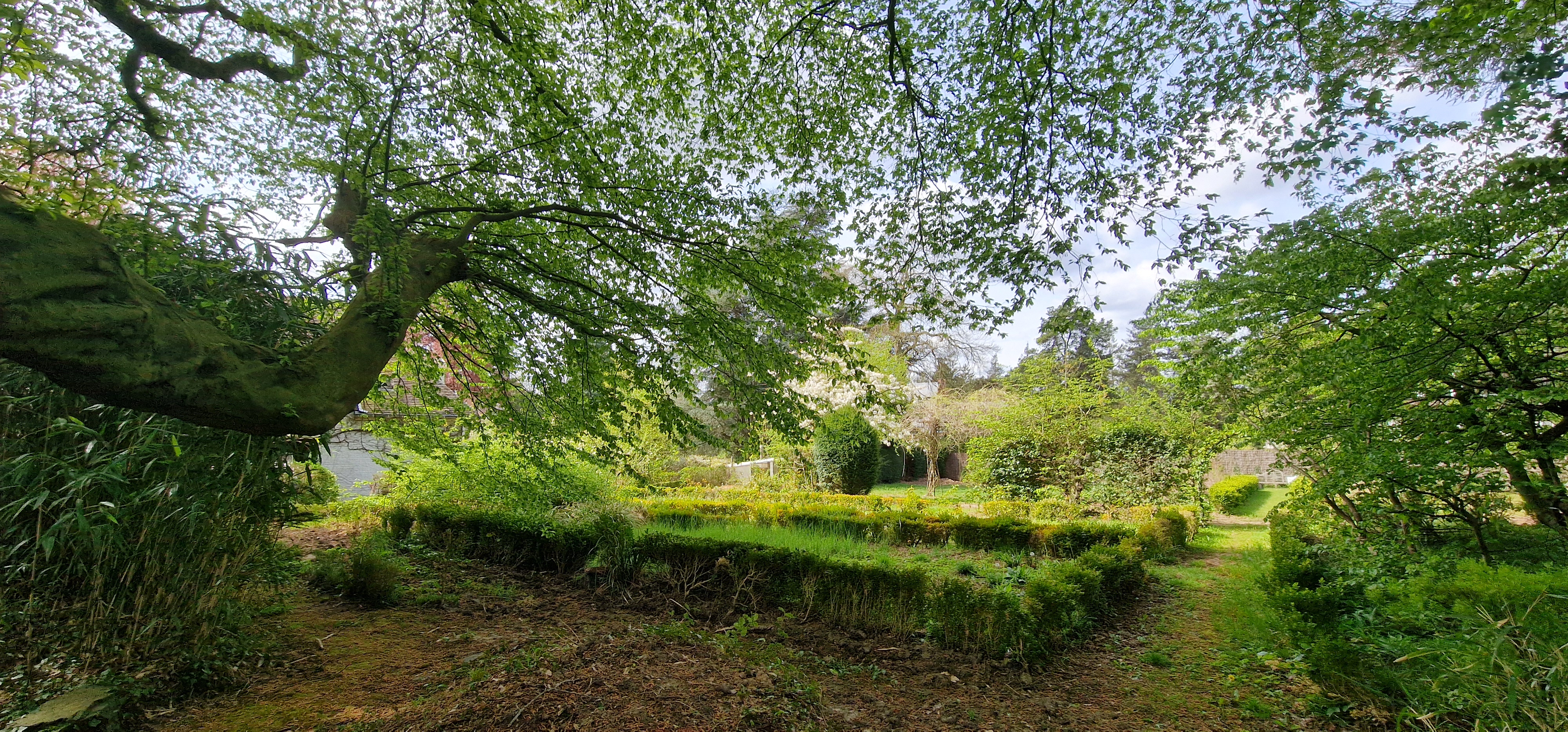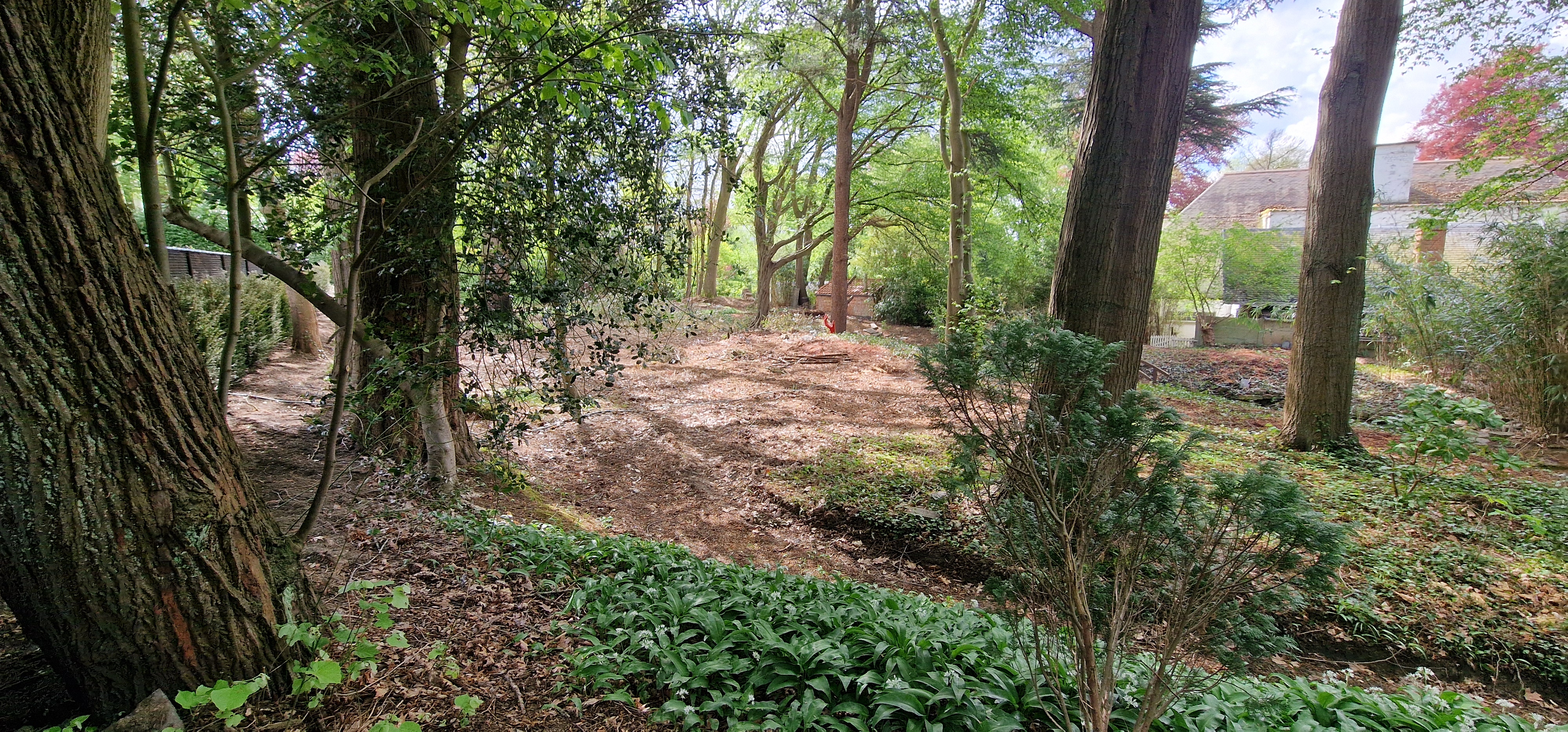 A discrete and secluded manor plot offering a serene retreat from the bustling city outside.